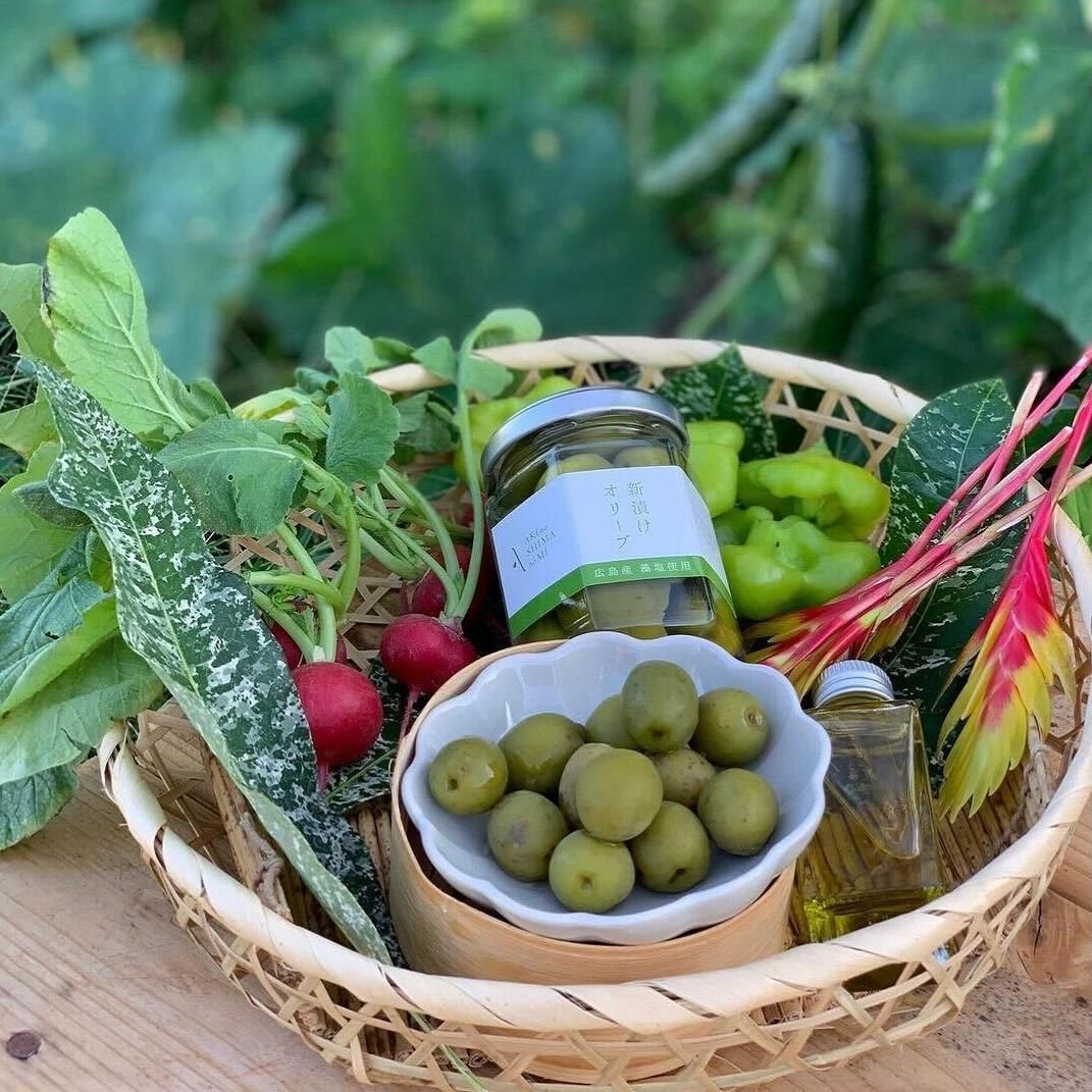 広島県産オリーブ100%を使用したエクストラバージンオリーブオイル「江田島搾り」と「新漬けオリーブ」のセットです。2023年秋に収穫したばかりの旬のオリーブオイルと新漬けです。お歳暮や誕生日プレゼント、結婚・出産のお祝いなどギフトにもおすすめです。安芸の島の実オリジナルのギフトボックス(小)でお届けいたします。