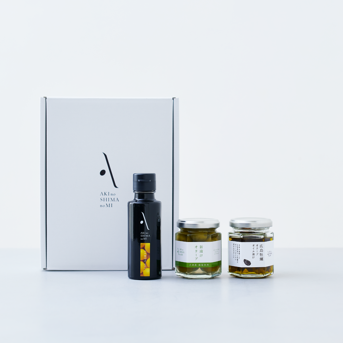 エクストラバージンオリーブオイルに、広島県産の乾燥した果物や唐辛子を漬け込んで風味を加えた人気のフレーバーオイルと2025年収穫したオリーブの「新漬け」、「牡蠣のオイル漬け」のセットです。牡蠣のオイル漬けは定番のエキストラバージンオリーブオイル漬けが入ります。お歳暮や誕生日プレゼント、結婚・出産のお祝いなどギフトにもおすすめです。安芸の島の実オリジナルのギフトボックス(小)でお届けいたします。